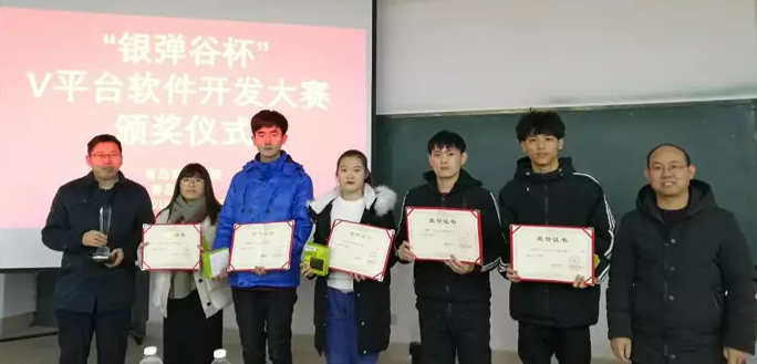 2. 培训活动。工作室对接同望科技有限公司进行V平台的培训工作,在学校开展了两次培训,人数分别为80人与140人,培训时间均为一个月左右。第二次培训主要由工作室成员负责完成,并成功举办了银弹谷杯软件开发大赛,参赛队伍一共提交了14个软件作品,取得了良好的效果。