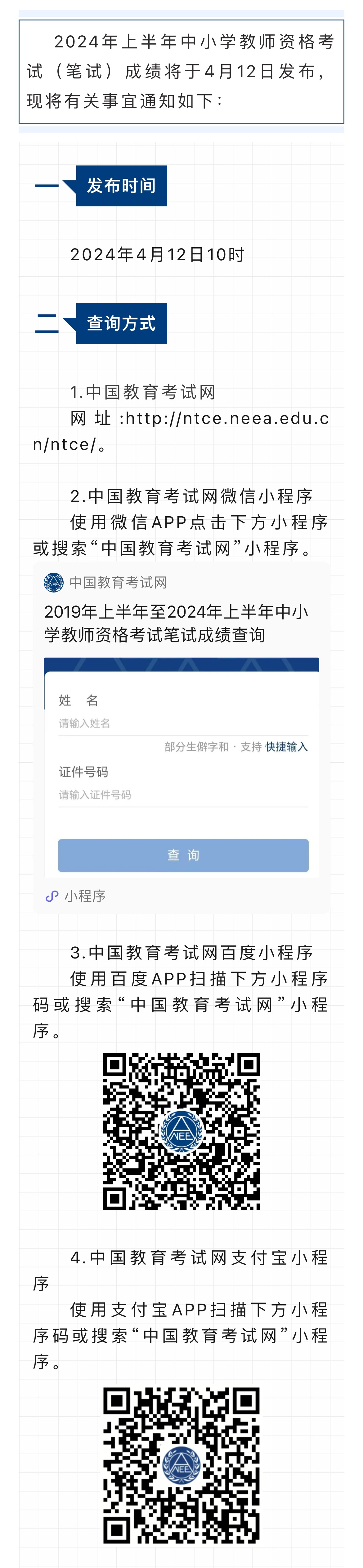 2024上半年中小学教师资格考试(笔试)成绩查询公告