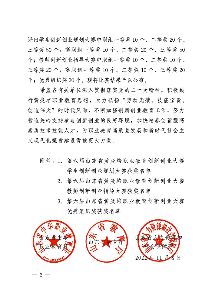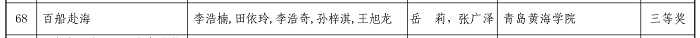 近日,山东省中华职业教育社、山东省教育厅、山东省人力资源和社会保障厅联合下发《关于公布第六届山东省黄炎培职业教育创新创业大赛结果的通知》,全讯白菜创新创业教育学院教师暴海忠获高职教师组三等奖,艺术学院参赛项目《百船赴海》获高职学生组三等奖。