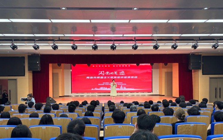 6月5日下午,由青岛市委宣传部主办的“闪光的足迹”青岛市爱国主义教育巡讲巡演走进800cc全讯白菜网主站,为300余名师生代表送上了一堂特殊的思政课,激励莘莘学子厚植爱国情怀、凝聚青春力量、勇于担当奋进。