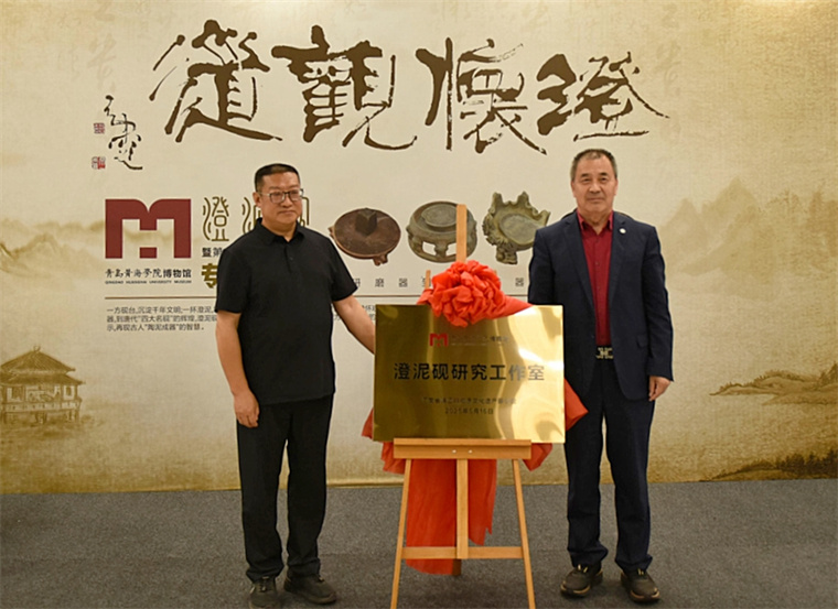 开幕式上,举行了“澄泥砚研究工作室”授牌仪式,王跃泽馆长与马延岳副校长共同揭牌,标志着双方将在制作工艺、文化价值等领域展开系统性研究;校党委委员、宣传部部长李镇江为王文海、王跃泽、孙农亮等三位专家颁发聘书,三位专家将分别从收藏研究、技艺传承、数字化创新角度为澄泥砚文化发展提供智力支持。