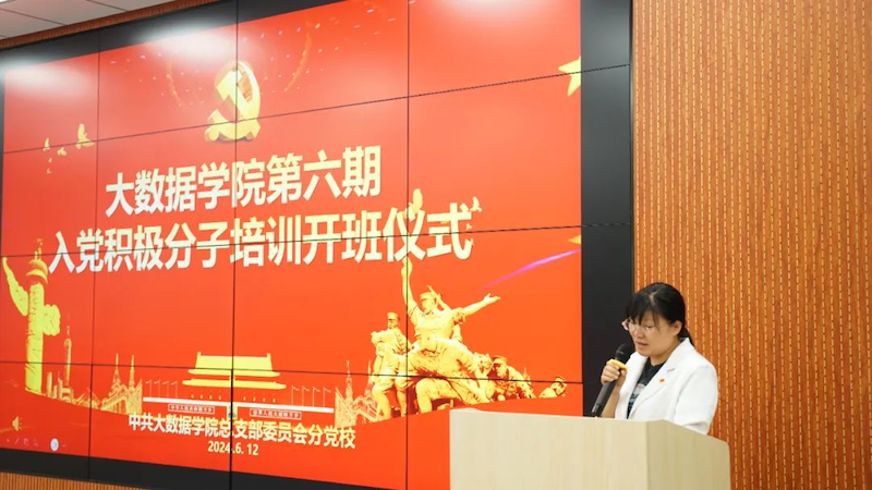 为深入学习贯彻习近平新时代中国特色社会主义思想,贯彻落实新时代党的建设总要求和新时代党的组织路线,严格党员发展程序,保证新发展党员质量,帮助入党积极分子进一步学习掌握党的基础理论知识,加深对党的认识,端正入党动机,增强党性修养,提高政治素质,大数据学院于2024年6月12日16:30在知新楼二楼东配阳面201报告厅举办第六期入党积极分子培训班开班仪式。