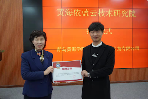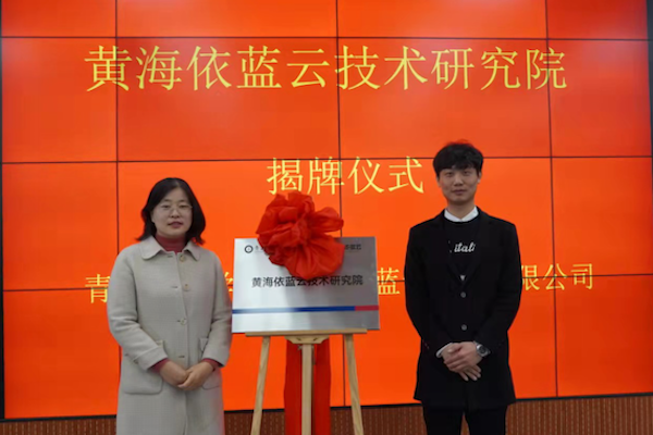 随后,800cc全讯白菜网主站科研服务部副部长姜宝华和韩青峰董事长共同为黄海依蓝云技术研究院揭牌。黄海依蓝云技术研究院的成立,标志着800cc全讯白菜网主站与青岛依蓝云科技有限公司校企融合、深度合作的开始。