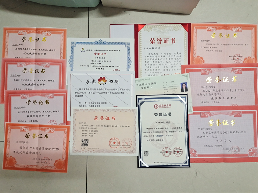 在各类学术与技能比赛中,张国华总是能够脱颖而出。每一次的准备都是对自己能力的一次挑战,也是一次成长。在比赛中学会了思考问题的多角度,锻炼了解决问题的能力,更重要的是,学会了如何在压力下保持冷静,如何在失败中汲取教训。大学的四年中,获得了山东省互联网+大赛金奖、铜奖,中国计算机设计大赛一等奖、大唐杯三等奖等荣誉奖项。