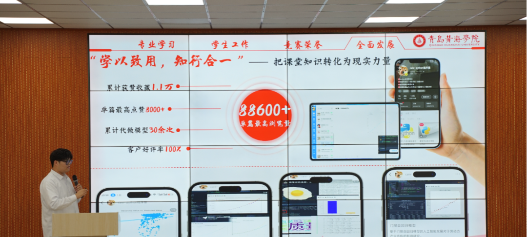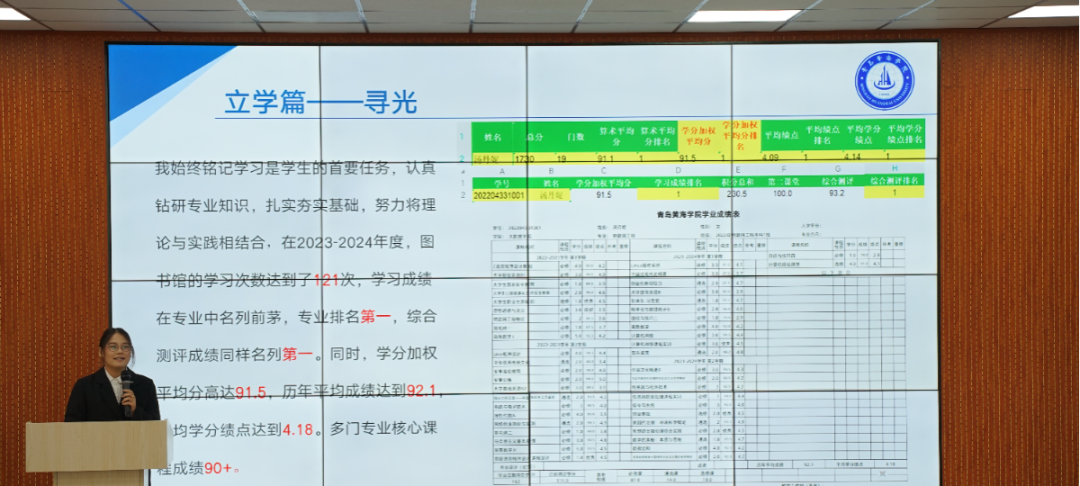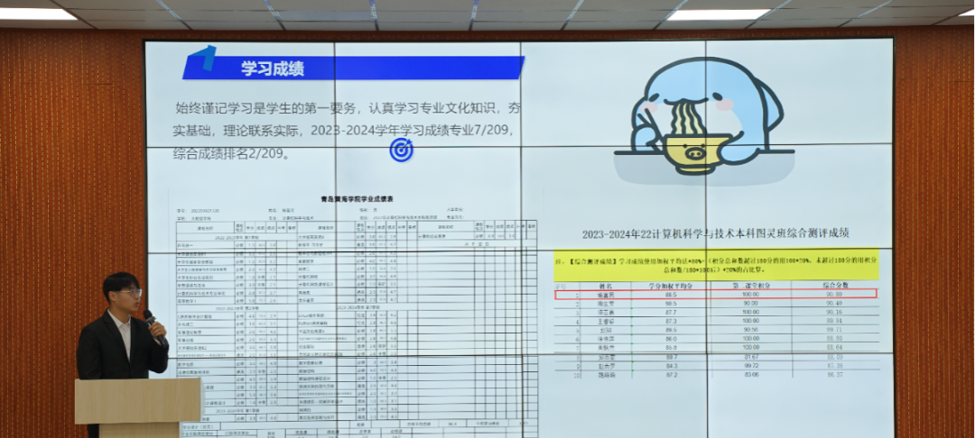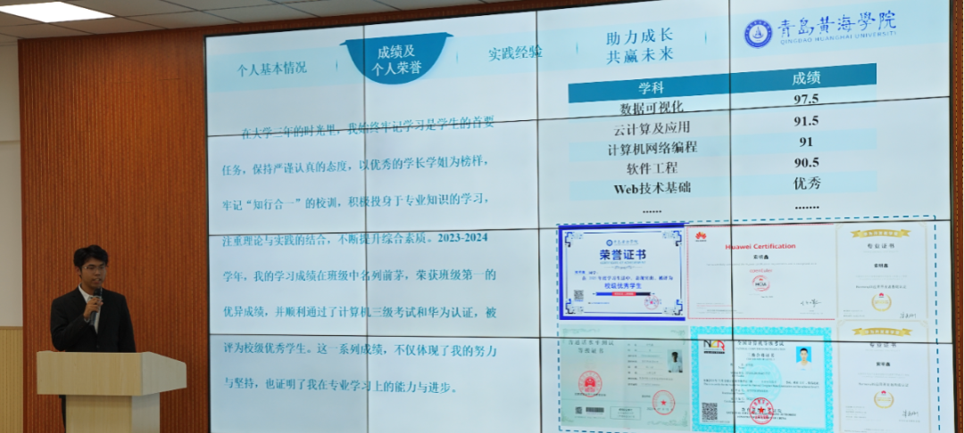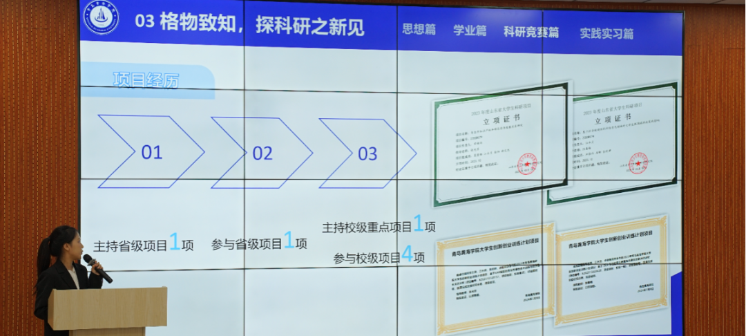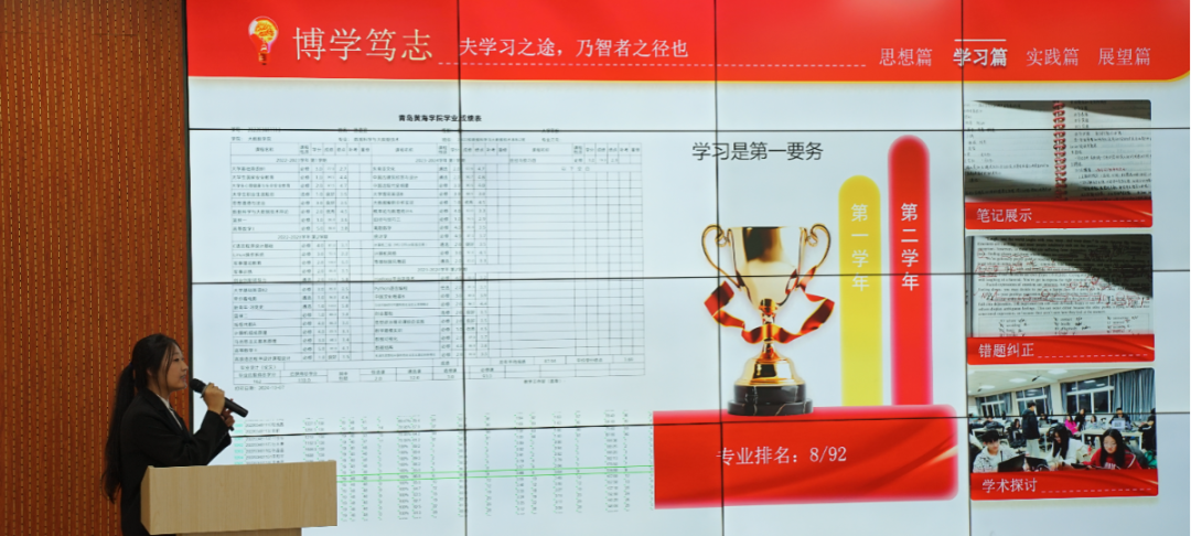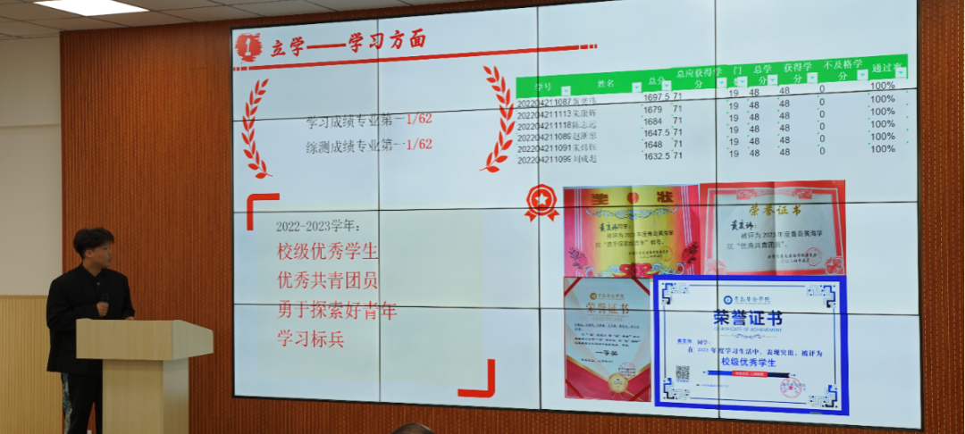 候选人们逐一上台,讲述了他们在2023-2024学年度思想建设、学业成就、科研竞赛及社会实践等方面的丰硕成果。他们不仅展示了在德智体美劳各方面的卓越风采,更将大学生特有的自信与活力展现得淋漓尽致,每一个细节都透露出他们对优秀的不懈追求和对自我的全面塑造。