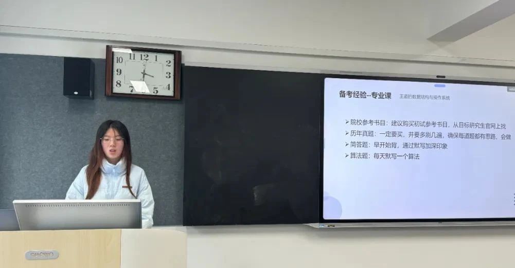 最后向同学们分享了她的备战考研的经历,分科施策,精准发力。在考研备考过程中,针对不同科目制定了科学且高效的复习策略,为考研学子提供了宝贵的经验借鉴。