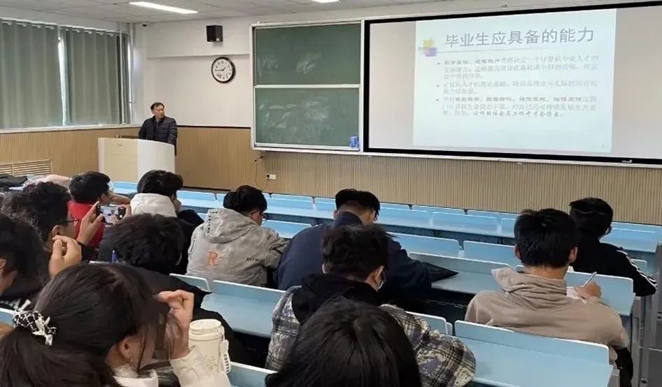 2024年11月27日,计算机科学与技术系邀请了山东科技大学博士生导师、大数据学院特聘教授杜玉越,为2024级本科学生作主题为“计算机学科大学生如何提升专业能力”的专题报告。杜教授在计算机科学领域拥有超过三十年的教学和研究经验,尤其在软件工程、人工智能、大数据处理等领域有着深入的研究和丰富的实践经验。