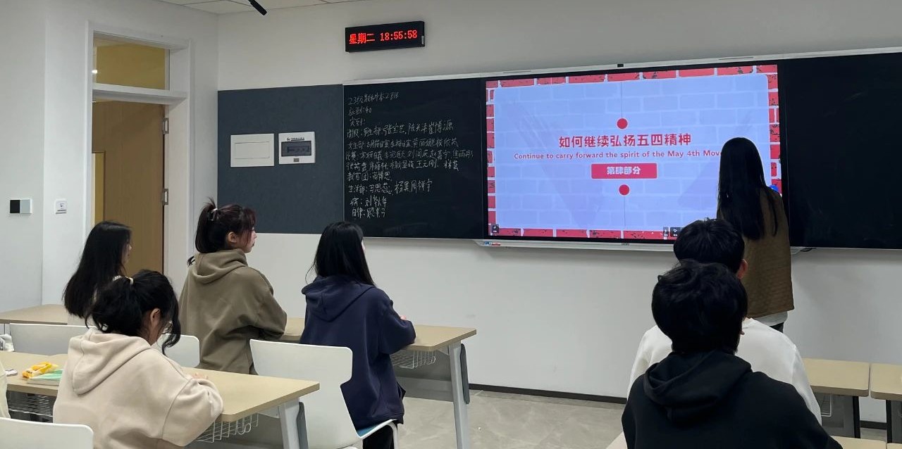 为始终秉持知行合一的教育理念,注重培养具有家国情怀、创新精神和社会责任感的新时代青年。大数据学院在各班级晚自习教室开展以“传承五四精神,赓续青春血脉”为主题的团课活动,旨在激发广大青少年的爱国热情,传承红色基因。