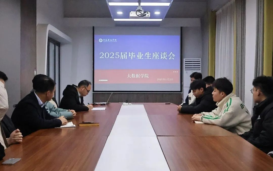 毕业来临之际,为推进专业建设,全面提升教学水平,加强学院与学生之间的联系,同时给毕业生提供一个分享经验、交流心得的平台,大数据学院于2025年1月2日在知新楼四楼会议室举行2025届毕业生座谈会。大数据学院院长助理李宗锋、就业主任蔡海涛老师以及毕业生代表出席会议。