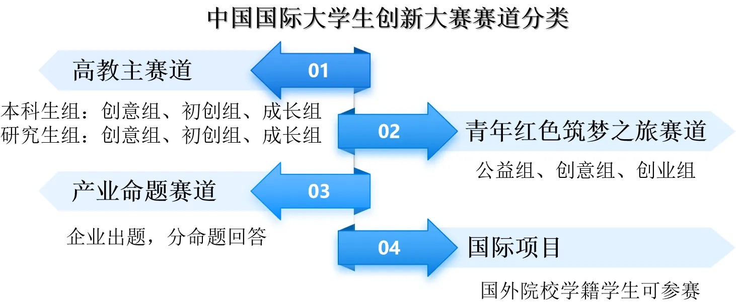 2023年,中国国际“互联网+”大学生创新创业大赛更名为中国国际大学生创新大赛,我们简称为“国创赛”。2024年的比赛约在四月左右启动,以2023年赛制和赛道设置为例,大赛有如下赛道: