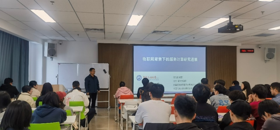 2024年4月23日,中国石油大学徐九韵教授来我院举行名师讲堂,主题为“物联网下的服务计算研究”,我院的骨干教师和物联网专业学生到场参加。徐教授的讲座不仅为师生们带来了前沿的学术视野,也极大地丰富了我们的教学和研究内容。