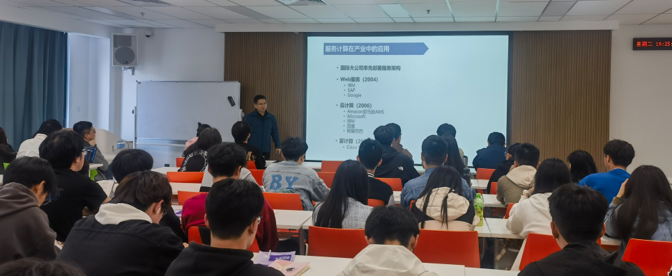 徐教授在报告中首先分享了他在Web服务选择、服务组合及服务特征交互的在线检测与解决方法方面的深刻见解。他还深入探讨了网络服务的部署优化问题,将自身丰富的经验与理论知识相结合,以通俗易懂的方式为师生们答疑解惑,提供了极具价值的学术指导。