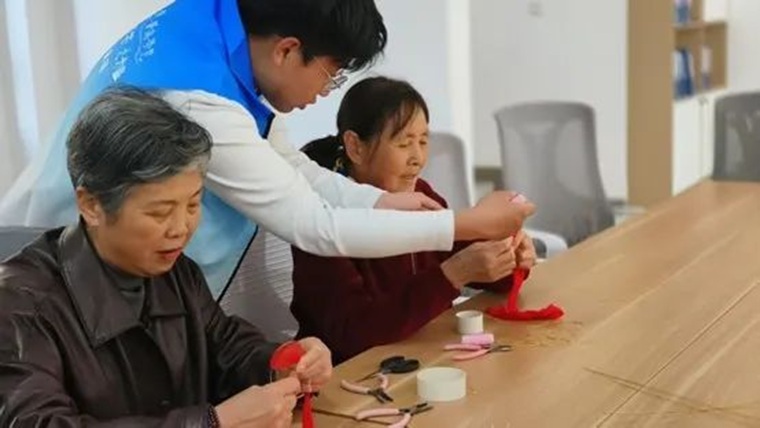 在制作过程中,老人们充分发挥自己的创造力,创作着他们心目中的最美花朵,大家一边制作,一边分享着自己的生活经验和趣事,现场气氛其乐融融。还有的老人将自己制作的半成品拿给身边的伙伴欣赏,互相交流心得,彼此鼓励。