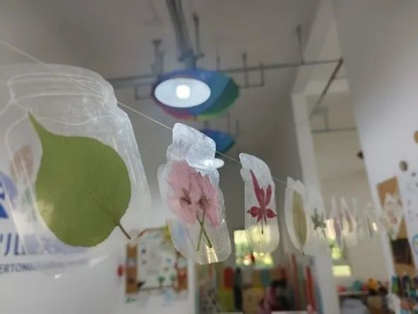 经过一番精心制作,一个个独具匠心的干花书签诞生了。小朋友们纷纷举起自己的作品向自己的朋友展示自己的作品,然后在志愿者的组织下小朋友们将自己的粘贴到活动空间的细绳上用作展示。每一个干花书签都是春天的象征,也是标记小朋友们童年时光的便签。