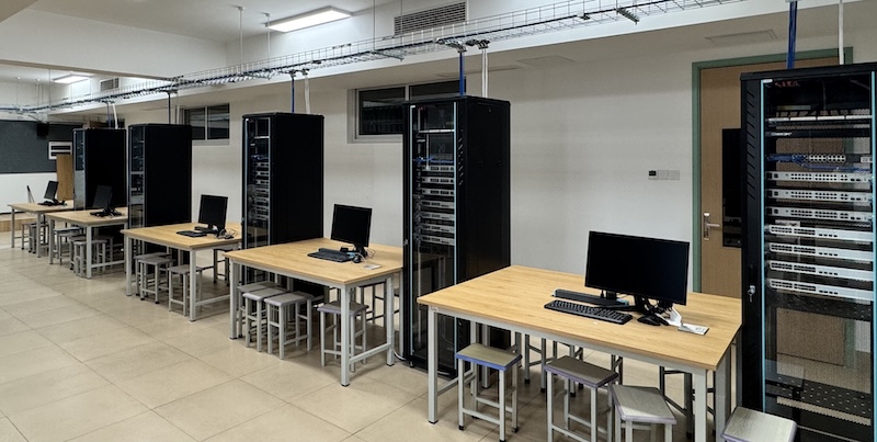 网络工程实验室提供先进的网络仿真软件与测试工具,学生通过模拟真实网络环境,配置路由器、交换机等硬件设备,掌握网络规划、部署与维护技能,帮助学生深入理解数据在网络中的传输机制、故障排查与优化策略。在2024-2025学年第一学期中已用于2023级计算机科学与技术本科1-5班以及2023级物联网工程本科1、2班《计算机网络》48课时的教学和实验课程。