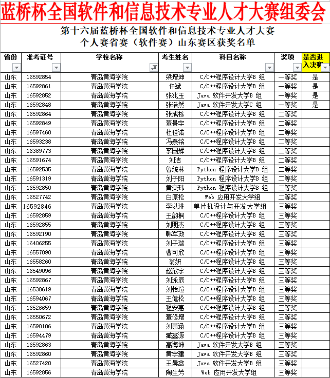 近日,第十六届蓝桥杯全国软件和信息技术专业人才大赛省赛结果正式揭晓。信息科学与工程学院参赛学生凭借扎实的专业知识、创新的思维能力和出色的实践操作水平,在软件赛中斩获山东省一等奖4项、二等奖9项、三等奖17项。获得省一等奖学生将代表学校参加全国总决赛。