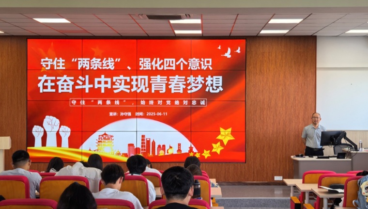 开班仪式结束后,信息科学与工程学院党总支书记孙书记讲授了《守住"两条线"、强化四个意识、在奋斗中实现青春梦想》的重要一课。在课上,孙书记从三个方面展开论述:一是守住"两条线",对党绝对忠诚;二是在思想境界上,要强化四种意识;三是推进四大行动,实现青春梦想。通过这堂课,呼吁青年以"两条线""四种意识"为准则,通过"四大行动"在时代舞台上实现青春价值,为中华民族伟大复兴贡献力量。