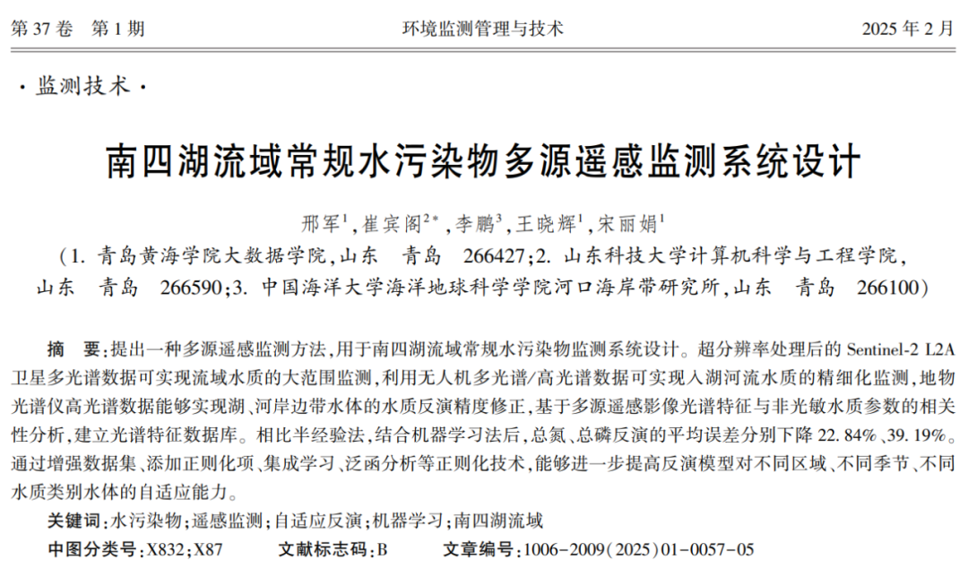 最后,结合研发团队目前的研究进展,探讨了“湖库水质状况及营养状态监测”的研究意义和技术路线,展示了相关研究成果。