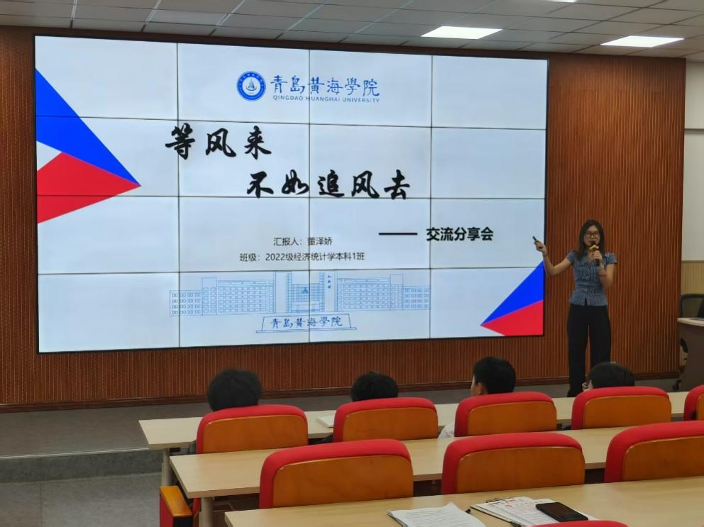 董泽娇——她是2022级经济统计学本科1班的班长,是国家奖学金以及思学奖学金的获得者,董泽娇学姐送给了同学们一句话“等风来,不如追风去”,鼓励同学们积极去追逐梦想,并且强调了学习中态度和心态的重要性,以自身的角度给同学们提供了一些缓解焦虑、端正态度的方式方法。