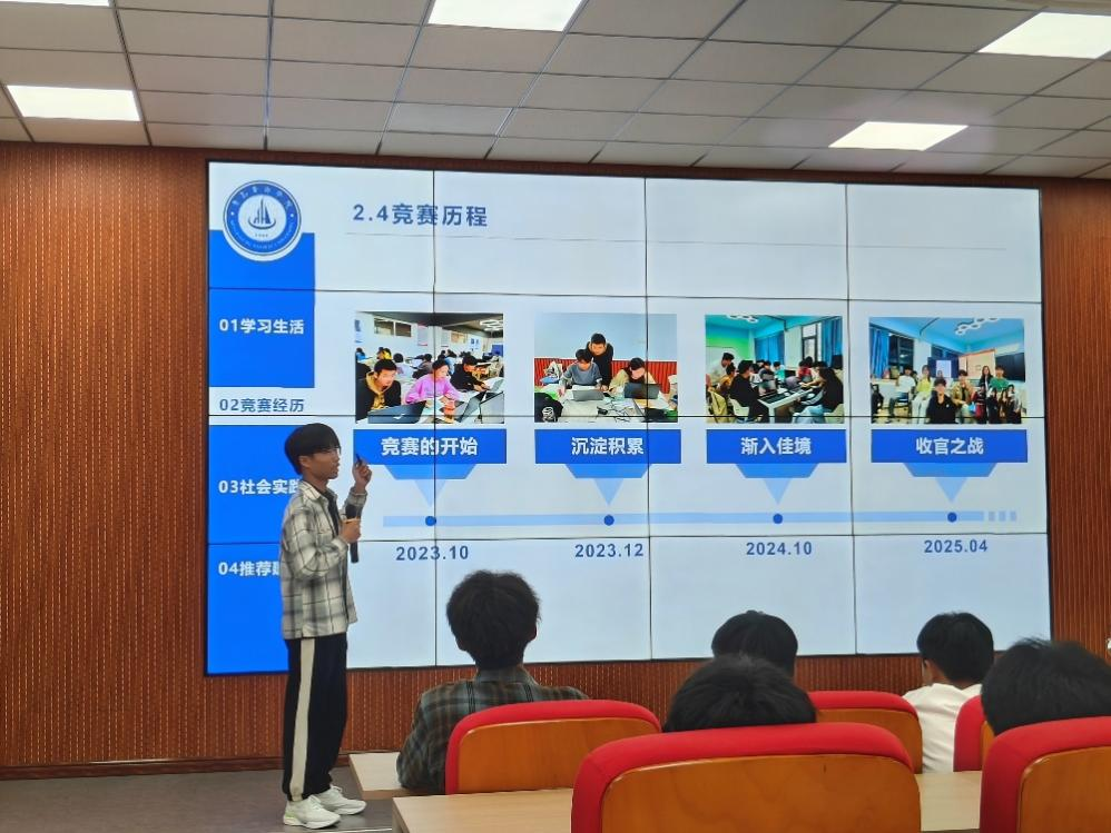 李可伟——他是2023级经济统计学本科1班的班长并且担任着统计分析竞赛社的会长,作为只比2024级同学大一届的学长,他详细的讲述了他从大一新生是如何一步一步的获得现在的成绩的,为同学们详细规划了竞赛的思路,并且分享了自己作为大二学长的未来规划。