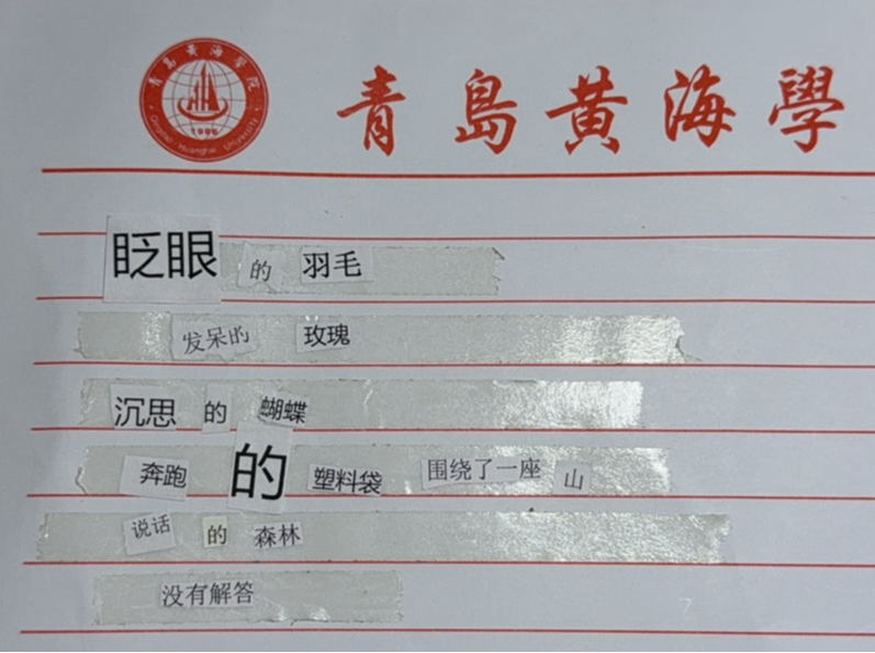 在活动中,同学们从复习的书本和笔记中寻找灵感,将知识点、公式、历史事件等与文学意象和诗句相结合,创作出独特的拼贴诗。这些作品展现了同学们的创意和智慧,也体现了他们对学习的热爱。