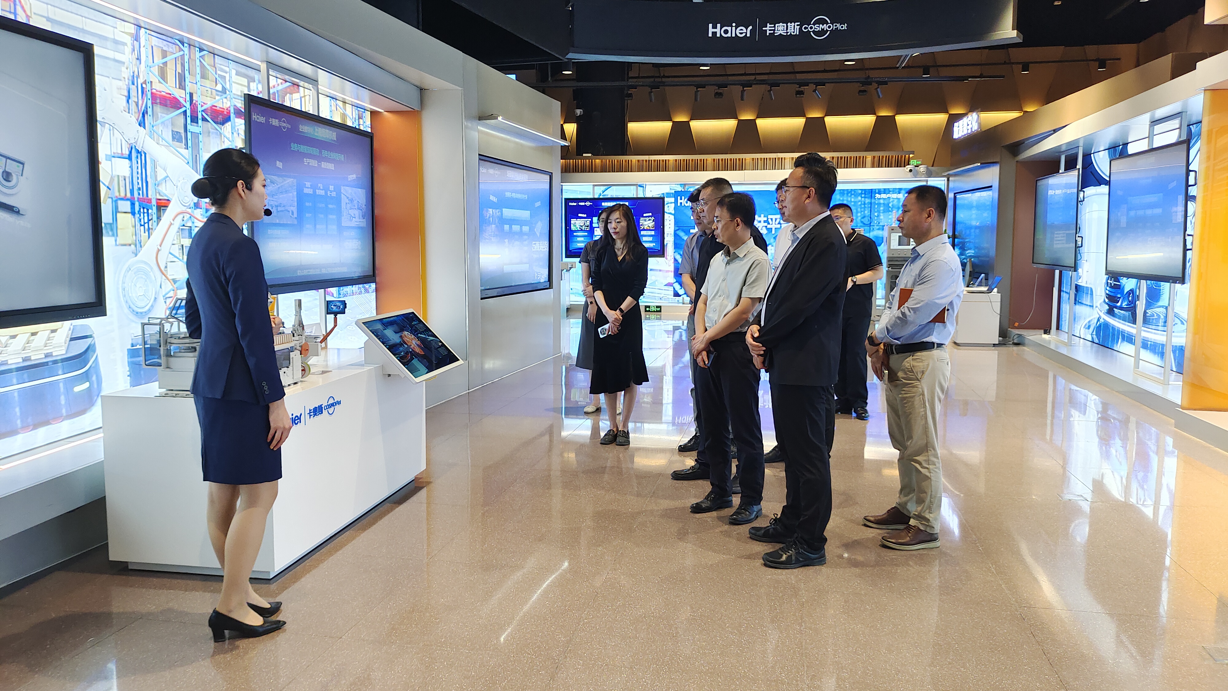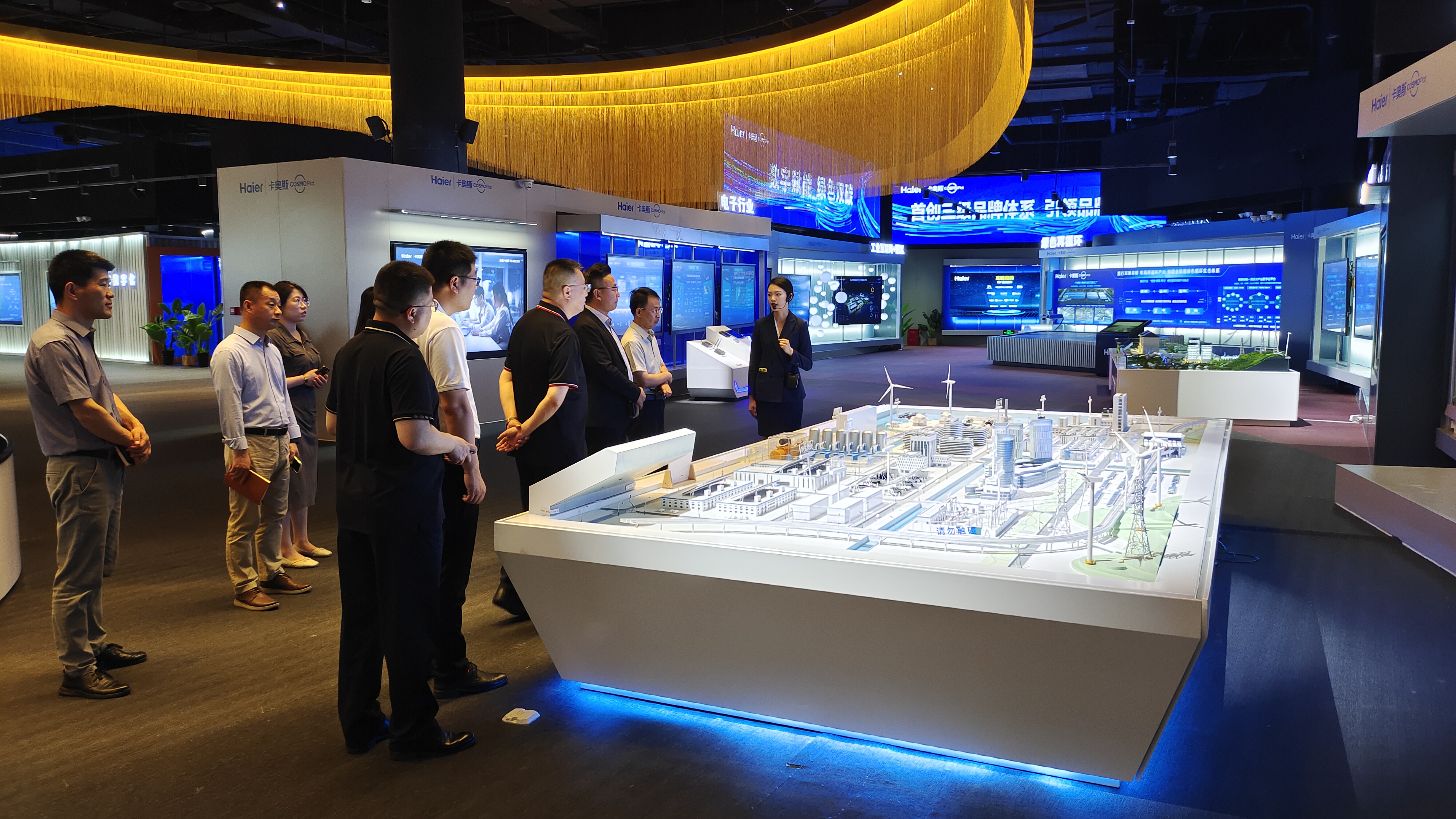调研团队实地走访调研了海尔生态体验中心。海尔生态体验中心位于青岛海尔科创生态园,建筑面积1.6万平方米。展馆共分为三层,一层为海尔卡奥斯生态展,展示海尔在工业互联网平台上的创新成果和应用案例。二层为海尔文化展,展示海尔的企业文化和品牌故事,包括其发展历程和重要里程碑。三层为海尔智慧生活展,展示海尔在智能家居领域的最新技术和产品。