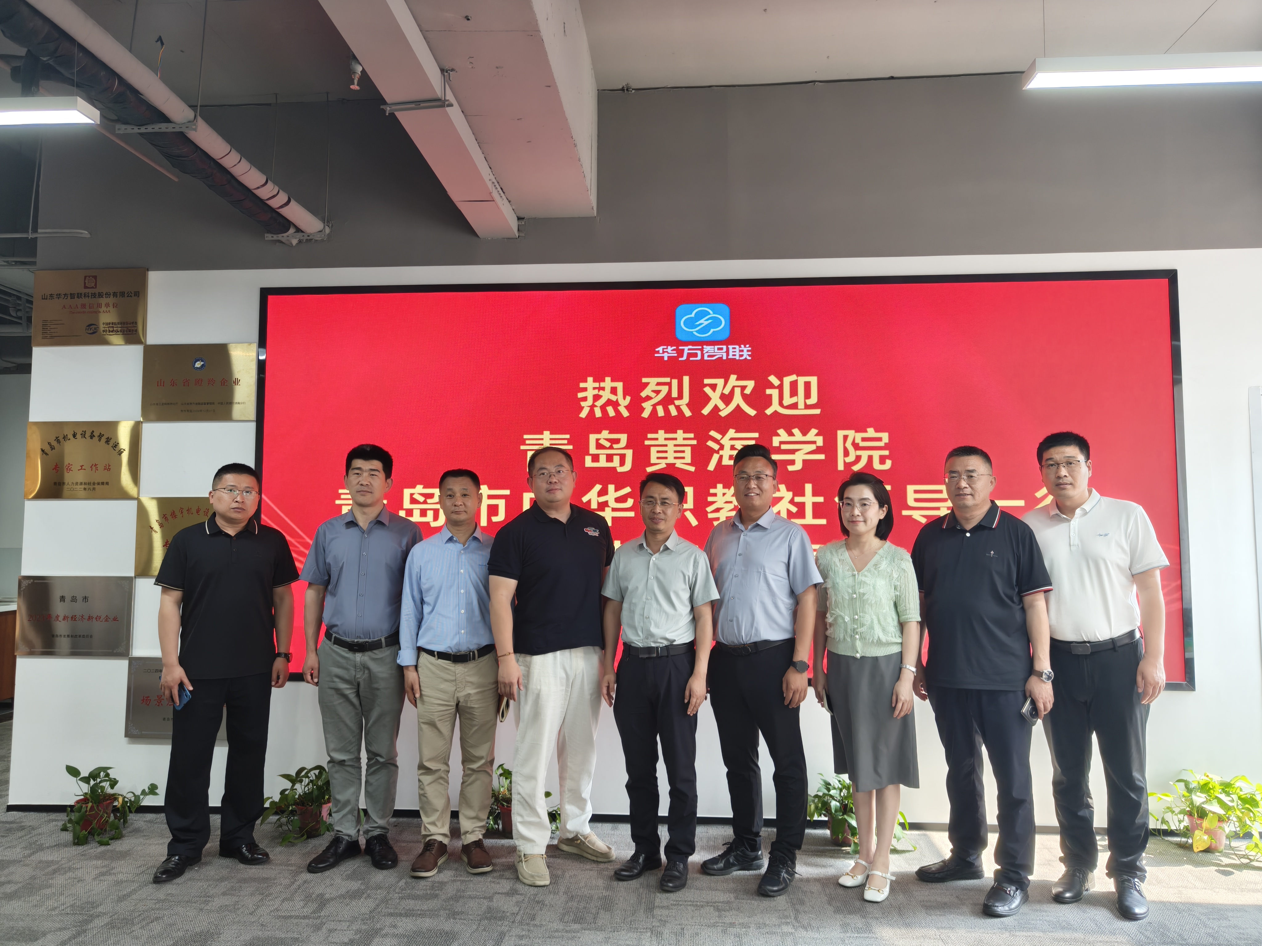 调研团队第二站走访调研了山东华方智联科技股份有限公司。公司总经理孙蔡欢及相关部门负责人全程陪同,双方围绕企业人才需求、校企合作模式创新、产教融合实践路径等议题展开深度探讨。