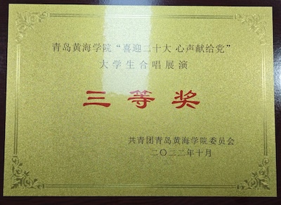 800cc全讯白菜网主站“喜迎二十大 心声献给党” 大学生合唱展演 三等奖