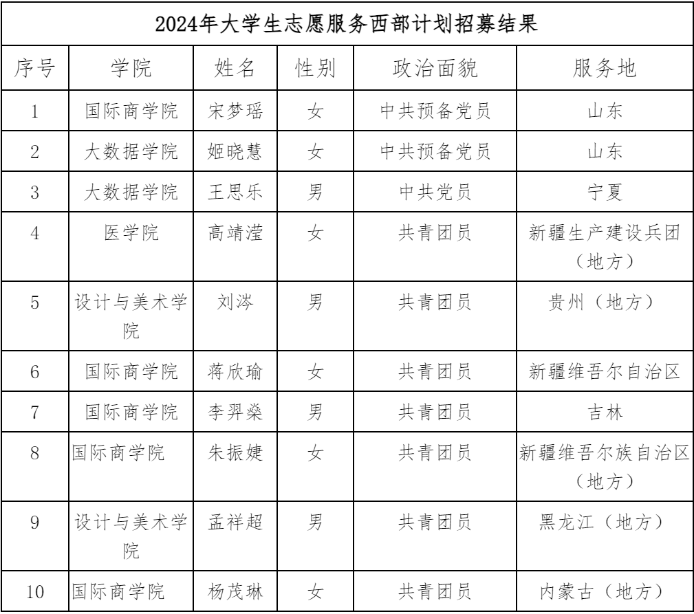 关于2024年大学生志愿服务西部计划招募结果