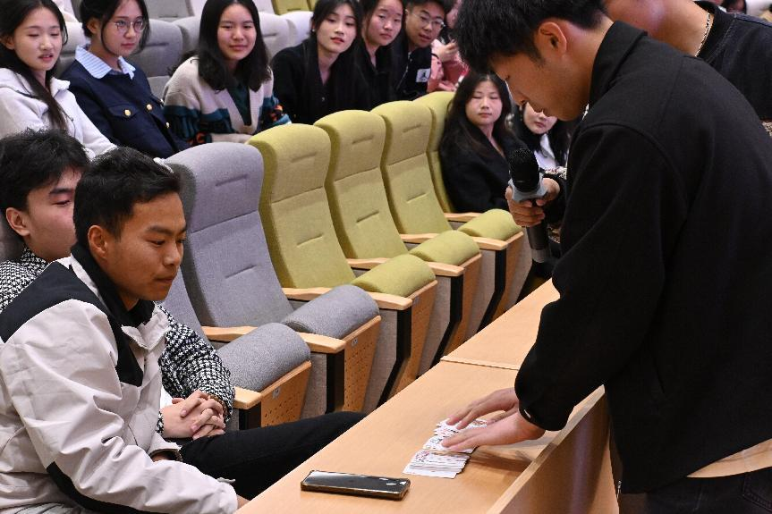 学术研究部带来精彩的扑克魔术表演、志工部带来奇妙的神奇盒子魔术表演。神奇的魔术让人忘却来时的烦恼,将生活中的琐事抛之脑后,魔术师与在座的成员积极互动,现场呈现出一片和谐欢乐的气氛。