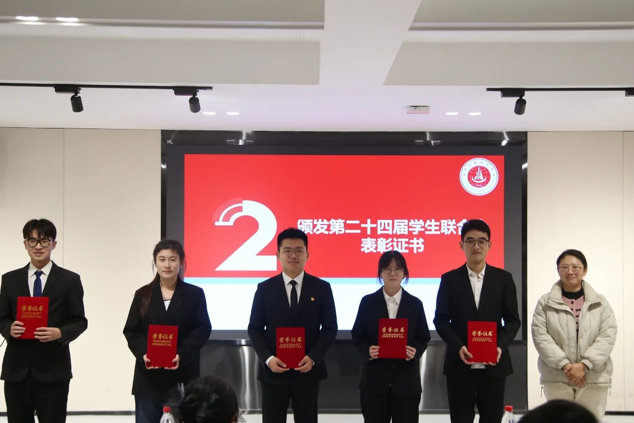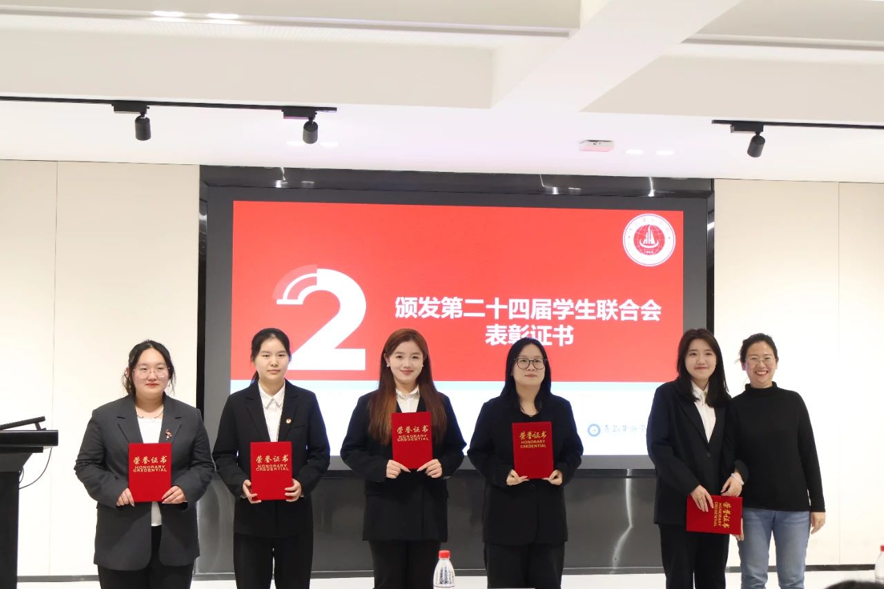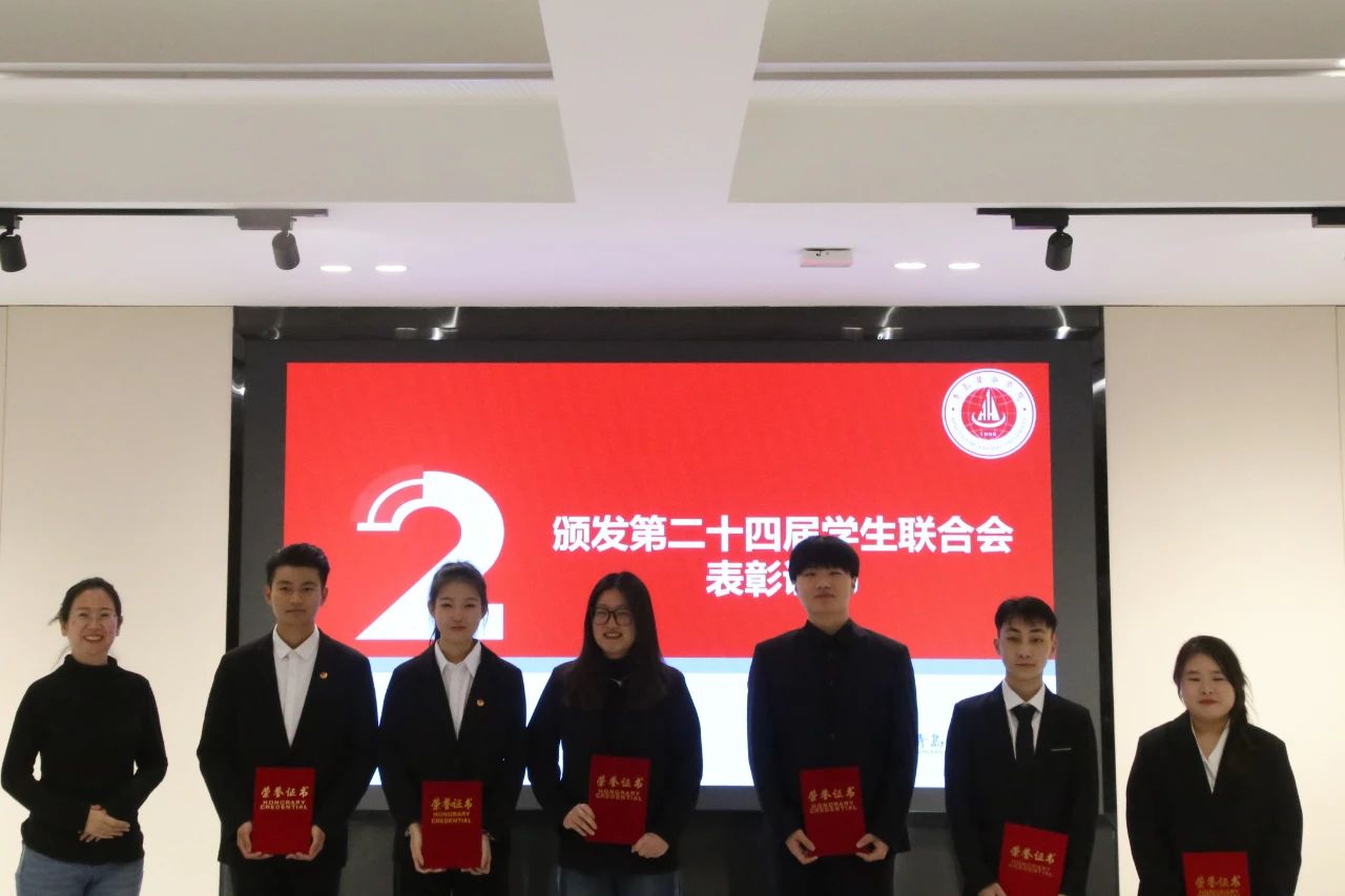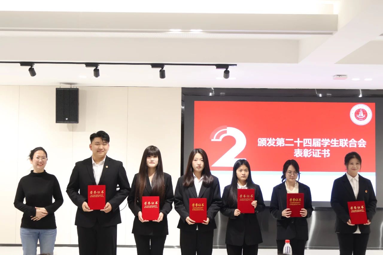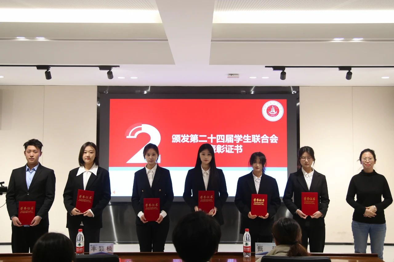为学生联合会主席团、部长、副部长颁发表彰证书。