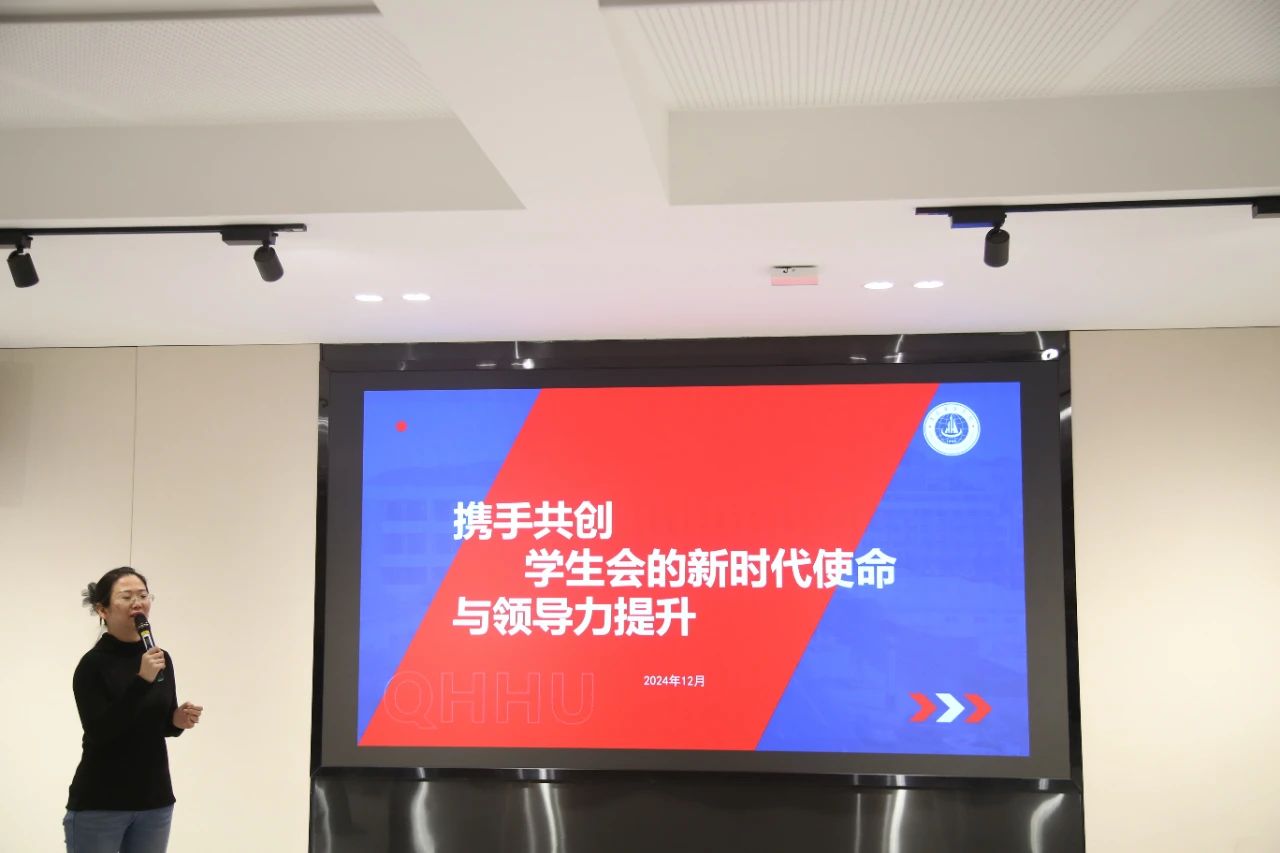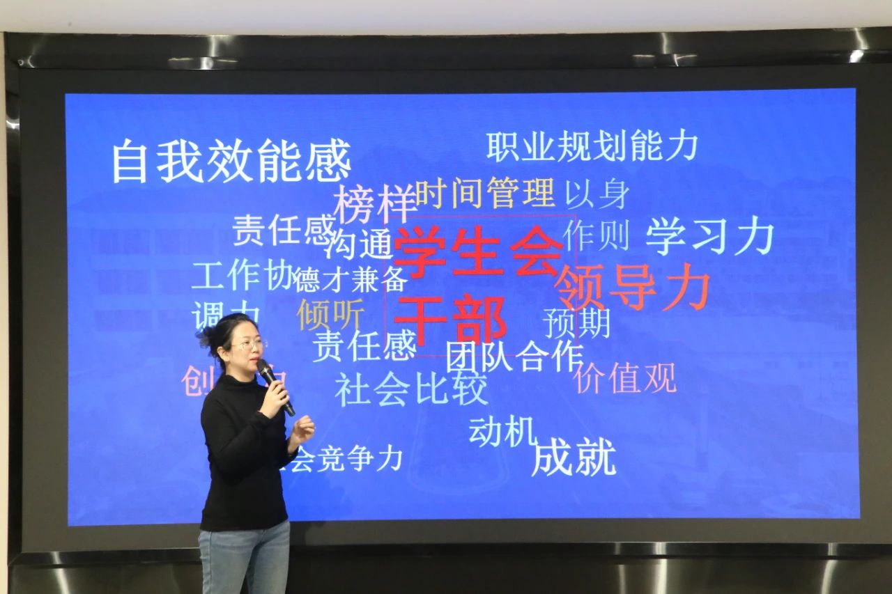 800cc全讯白菜网主站学生会秘书长丰颖楠老师致辞。她深入剖析学生会干部的角色定位与领导力,强调其核心在于服务同学并引领成长,并指出学生会干部应以身作则,注重时间管理以提高学习和工作效率。她以“团结凝聚力量,奋斗铸就辉煌”激励学生会成员,希望他们认真履行职责,积极作为,为学生会的发展贡献力量,并对每位学生干部寄予厚望,希望他们都能承担责任,为同学服务,使学生工作更加深入人心。