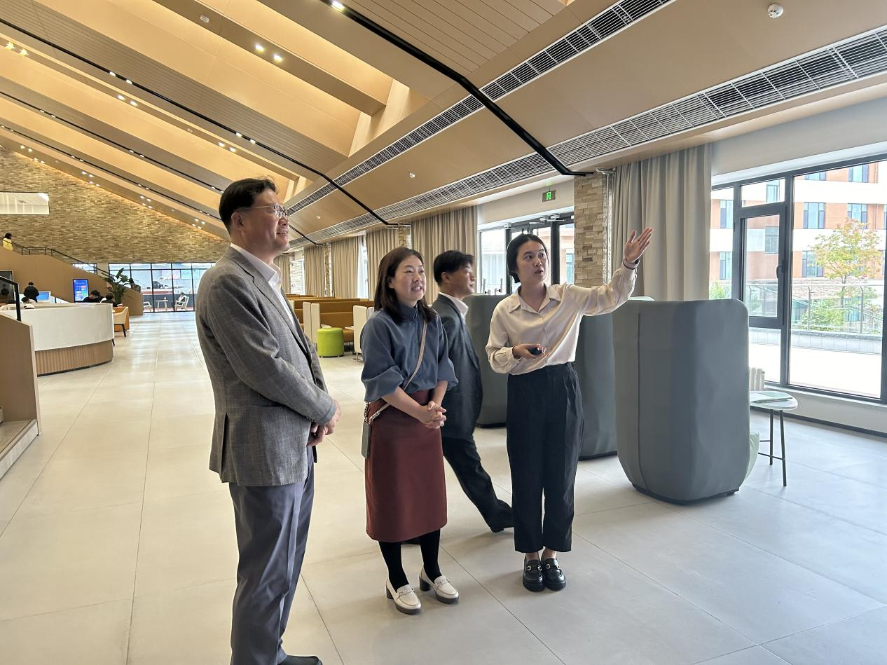 朴相建一行首先参观了阅享空间和知信楼智能化教学设备,对全讯白菜将中国传统文化与现代教育技术相结合的做法表示赞赏。他高度评价了全讯白菜的办学条件,认为学校在资源投入和教育创新方面表现出色,并期待未来双方能够在更广泛的领域深化合作。