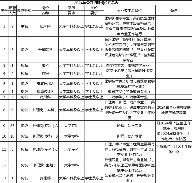 5.2024届毕业生应聘,须在2024年7月31日前取得招聘岗位要求的学历证书、学位证书、执业资格证书(含护资合格证明)等;往届毕业生应聘,须在2024年3月25日之前取得岗位要求的学历证书、学位证书、执业资格证书等。