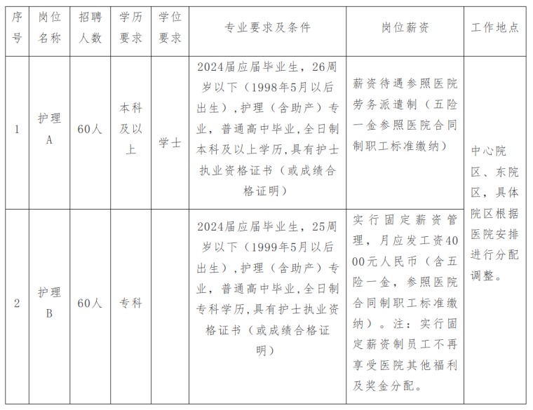 应届毕业生须在2024年7月31日前取得招聘岗位要求的学历(学位)证书、护士资格证书等。