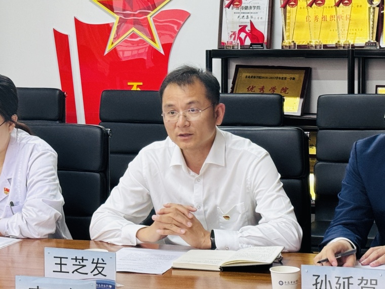 随后,医学院党总支书记、副院长王芝发从政治建设、组织建设、思政和意识形态等方面就基层党建工作的开展情况进行了详细汇报。汇报内容涵盖了医学院发展现状、党员队伍建设、党组织活动开展、党员教育管理等方面,详尽展示了学院基层党建工作的成果和亮点,同时也点出了学院党建工作在当前存在的主要问题,并提出了具体的解决办法和建议。