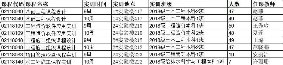 2018级学生实训安排