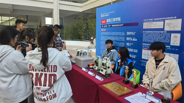 为培养学生创新能力,拓展知识视野,提高实践技能,建筑工程学院于 11 月 4 日至 8 日在知行楼中厅举办了第十六届大学生科技文化节,为学生搭建了一个展现自我、探索未知的优质平台,吸引了众多学生参与其中,在校园内掀起了一股热爱科学、钻研创新的热潮。