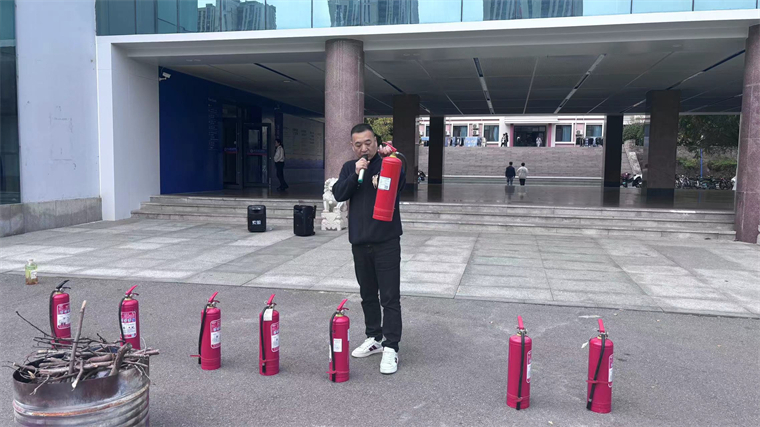 撤离完成后,大家在知新楼前集合清点人数。参与演练的老师生动且详细地讲授了消防知识,通过案例分析、现场演示等方式,深入浅出地介绍了火灾的危害以及应对方法。在专业人员的示范下,同学们亲自体验了灭火器的使用方法,将理论用于实践。