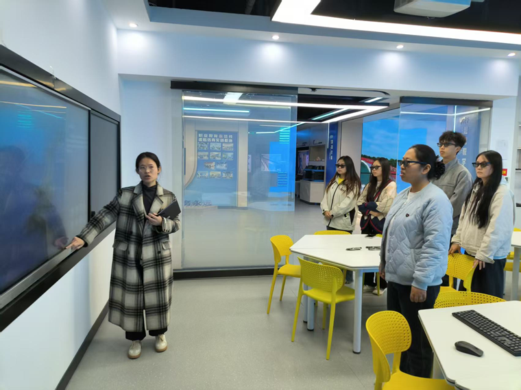 公司总经理焦胤彰致欢迎词,指出当前VR技术正从消费级向产业级应用加速渗透,科明聚焦“VR+垂直行业”的技术研发与场景落地,希望通过与高校的深度交流,推动产学研协同创新,共同解决行业痛点,培育数字化人才。双方就共建实践基地、联合科研攻关、联合学生培养,实现“科研-教学-产业”闭环等方面进行了深入而细致的交流。随后,公司负责人张成玉带领师生们参观了VR体验厅,从工业到文旅,展示VR技术跨行业适配性,现场播放与高校合作的虚拟仿真教学案例视频,直观呈现了VR技术“虚实融合”的核心价值。