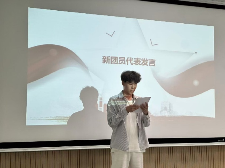 仪式第一项由李嘉琪宣读中国共产主义青年团简介和团员的义务及权力。仪式第二项新发展团员代表迟程在团旗下发表演讲,表示做为一名团员,要发挥团员的模范带头作用,做一名合格的共青团员,带动身边人积极投身于社会主义的实践当中去,努力学习积极进取,用实际行动践行一名合格的共青团员的责任。