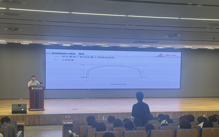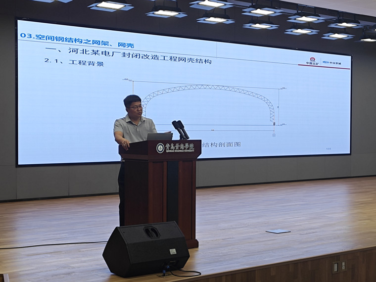成维根以《空间钢结构之网架网壳》为题,结合中冶京诚在阿尔及利亚巴哈吉体育场、常熟龙腾特钢码头料场封闭工程等国内外标杆项目中的实践经验,系统阐释了网架与网壳的结构概念、分类选型、荷载组合、边界处理及稳定性计算要点。