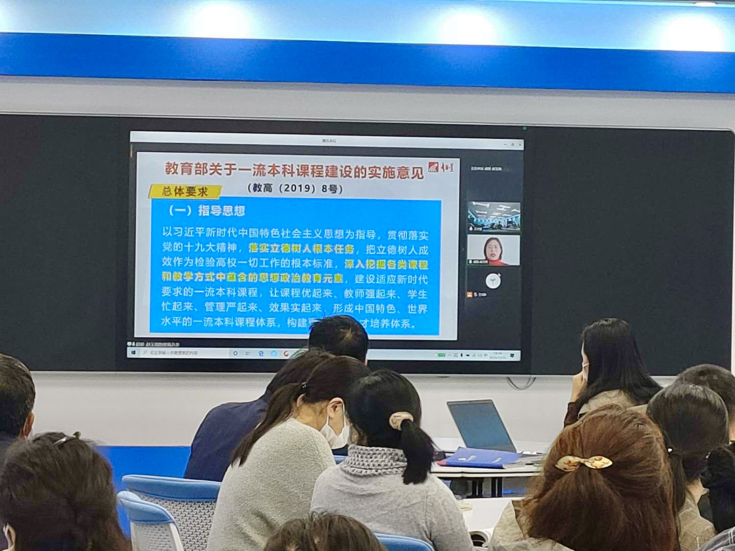 为了推进学校适应新时代要求的一流本科课程建设,深化老师对于一流课程申报、建设内涵的理解,做好校级、省级、国家级一流课程培育建设申报工作,10月15日,教师发展中心特邀超星集团教学设计总监赵玉霞对一流本科课程申报的相关要点进行了在线分享。各学院教学副院长、骨干教师等52人在知行楼智慧教室参加了线下会议。