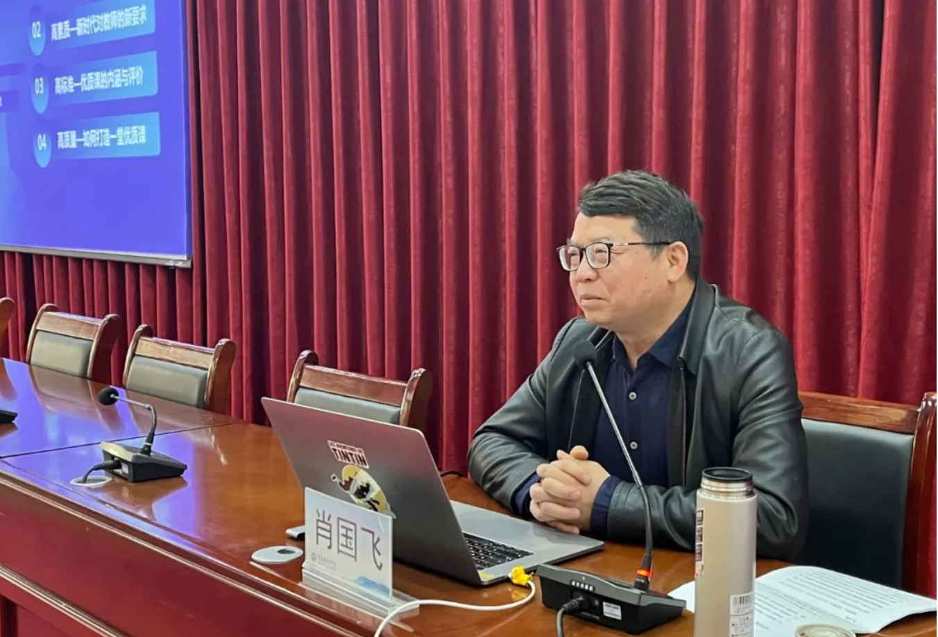 肖教授从“高站位、高素质、高标准、高质量”四个方面展开,从宏观到微观,向新教师阐释了“优质课”的内涵与设计方法。他提到教师是人才培养的关键,作为教师要有使命感、责任感和紧迫感,要与时俱进,不断提升自己的专业素养、数字素养,成为一名优秀高校教师,向“大先生”努力。