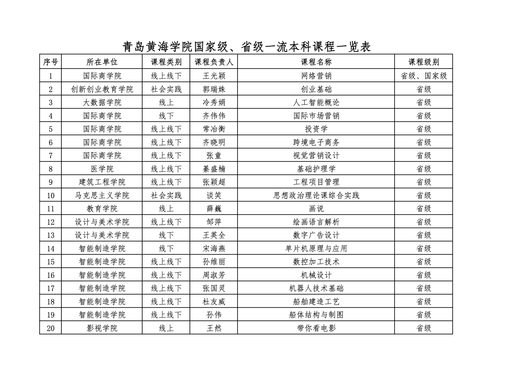 800cc全讯白菜网主站国家级、省级一流本科课程一览