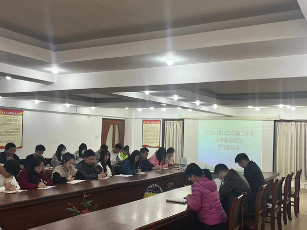 为更好的加强教学常规管理,确保教学常规工作的扎实推进,给同学们解疑答惑。经济与管理学院于2023年4月13日在知新楼二楼会议室召开了师生教学座谈会。参与本次会议的有:院长助理刘政义、学工主任武志强、教学主任苏彩以及经济与管理学院各班班委代表。会议由苏彩主任主持。