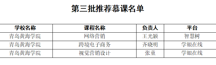 近日,教育部高等学校电子商务类专业教学指导委员会公布了第三批在线教学资源推荐名单。全讯白菜王光颖老师的网络营销、齐晓明老师的跨境电子商务以及张童老师的视觉营销设计三门慕课入选推荐在线教学资源推荐公示名单。