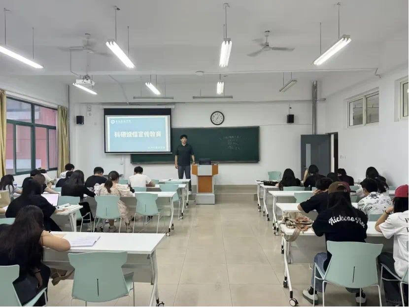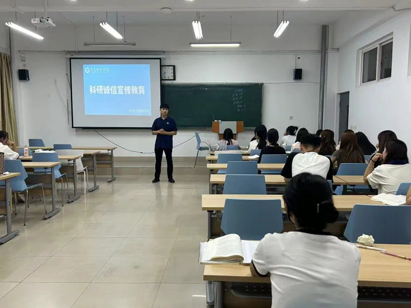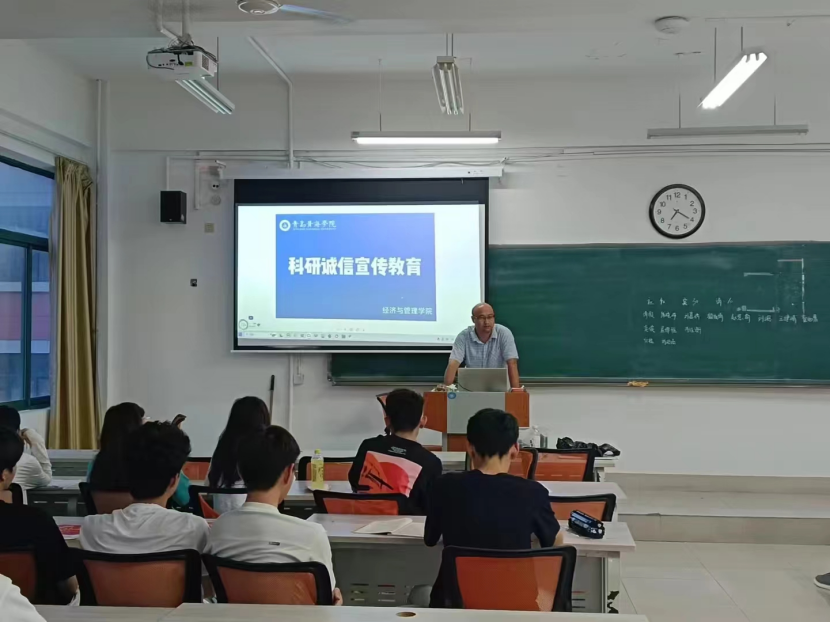 其次,经济与管理学院辅导员组织其班级学生召开科研诚信主题班会,辅导员带领学生学习了《教育部关于加强高等学校科研诚信建设和学术不端治理的指导意见》等重要文件精神,围绕“科研诚信是什么”、“科研失信行为有哪些”、“在科研中应如何要求自己”等方面进行了详细地讲解,号召学生们树立正确的学术观念,维护学术的纯洁性和严肃性。