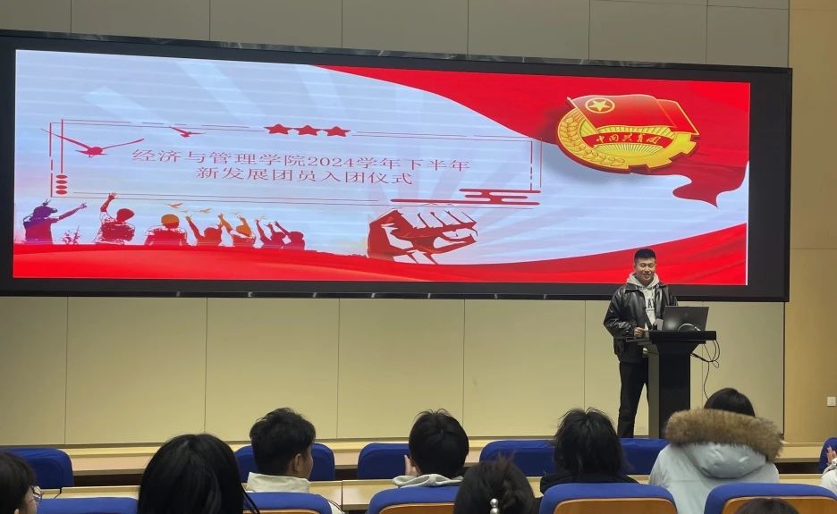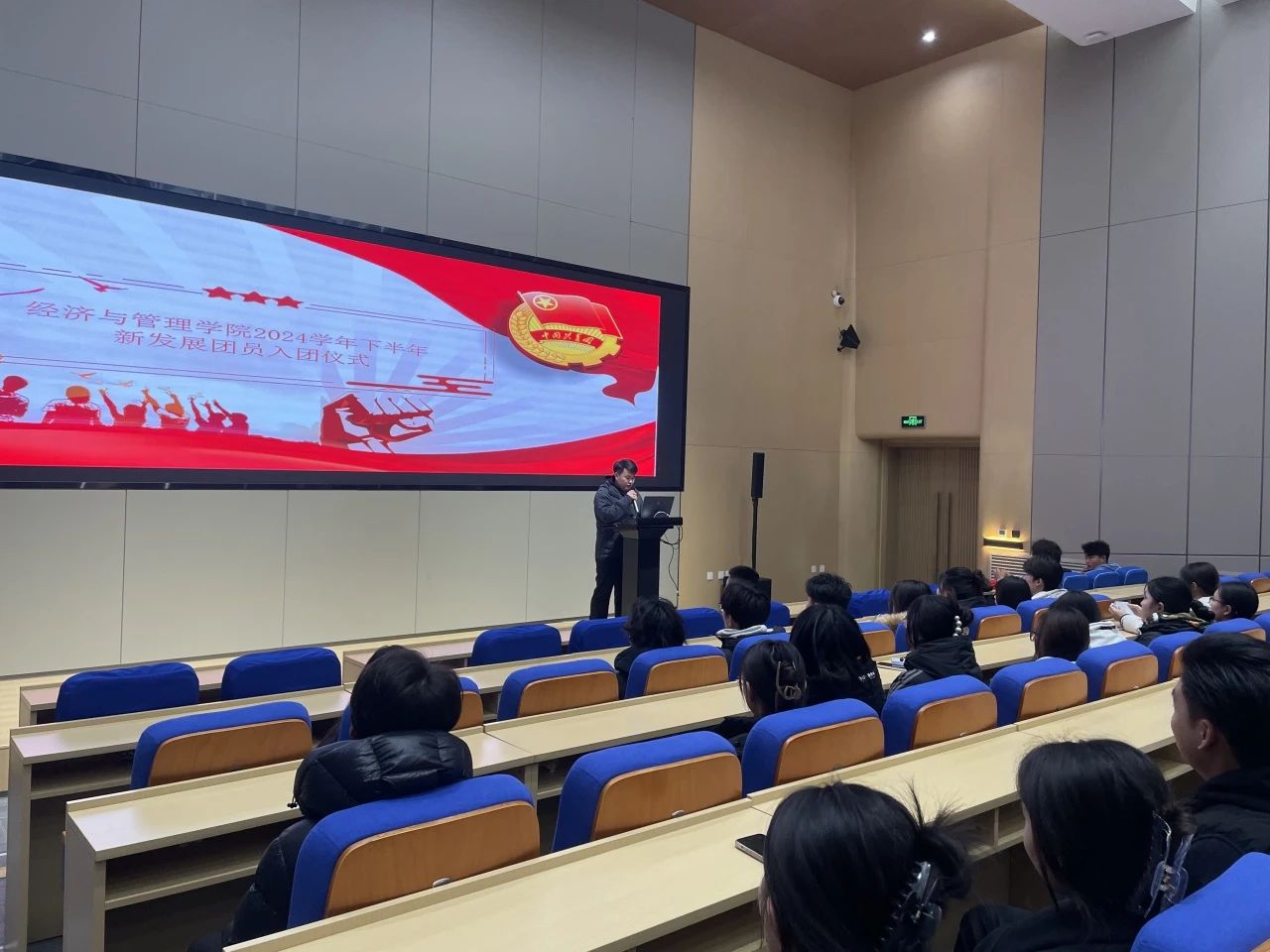 在这个充满希望与活力的 2024 学年下半年,经济与管理学院迎来了一批崭新的青春力量。新发展团员入团仪式,于12月23日在学院礼堂庄重举行,现场气氛热烈而振奋,师生们共同见证了这一意义非凡的时刻。