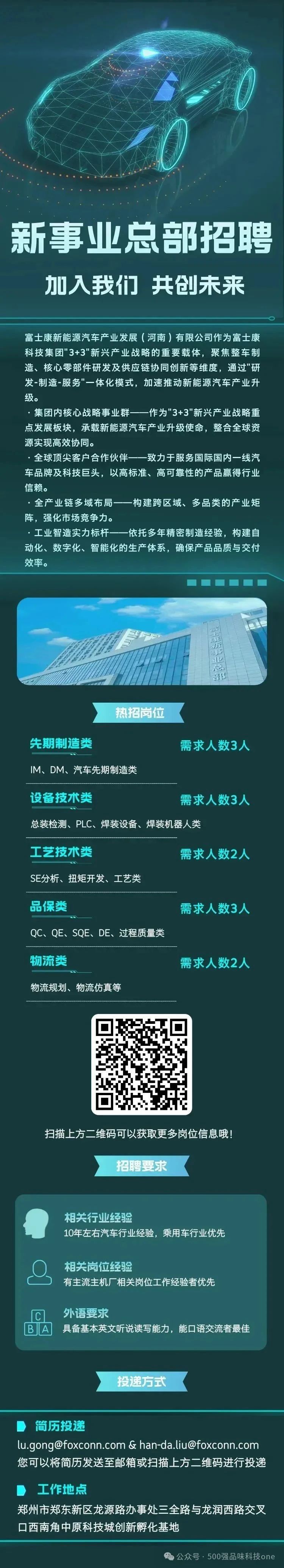 招聘信息 | 校招 | 富士康新能源汽车产业发展有限公司招聘